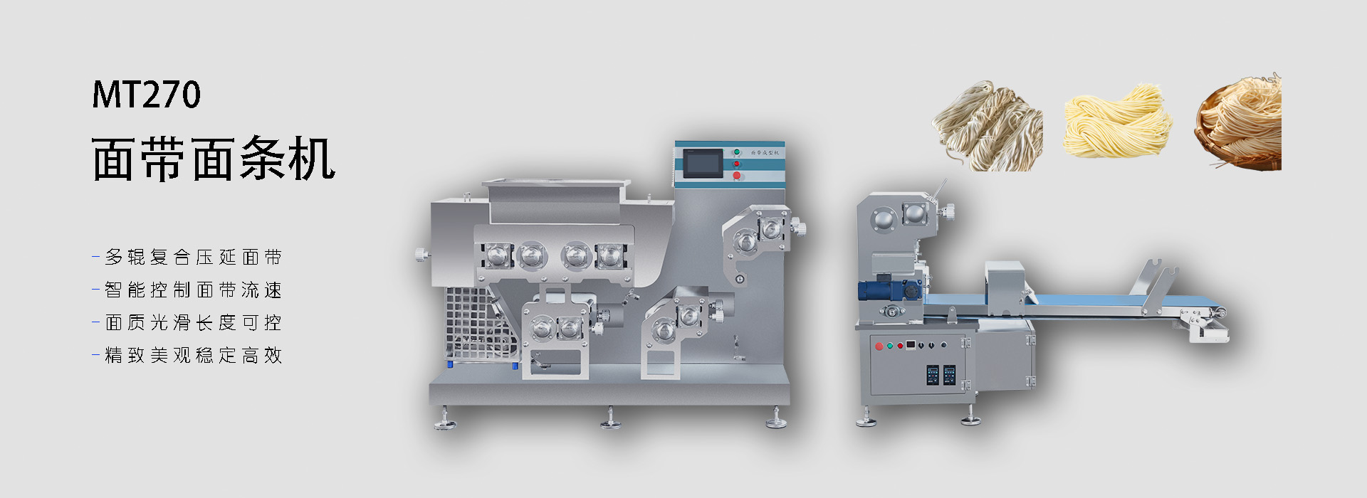 面食前處理設備在國內外都分布著非常龐大的用戶群體。這些面食前處理設備包括真空和面機、壓面機、面帶成型機、面條機、鮮面條生產線、冷凍熟面生產線和各類面食前處理產品及生產線。